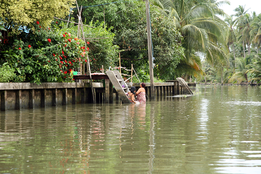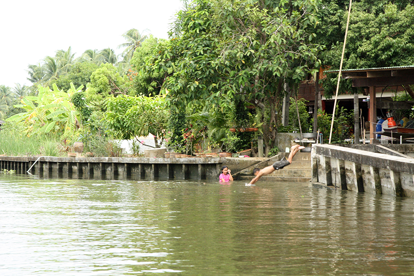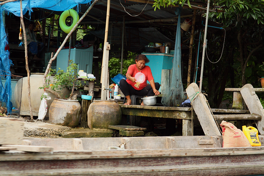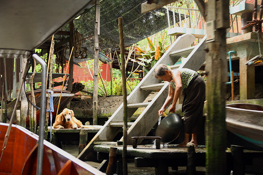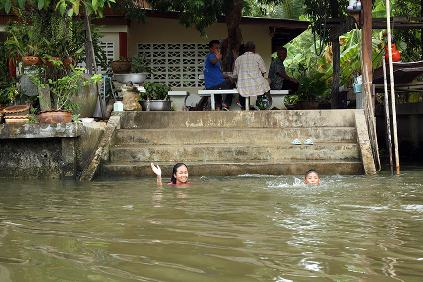 Safari bitiminde tekneye binip, sazlıkların arasından balçık kanalizasyon ve çamur ile kaplı suyu yara yara yüzen pazara dogru yola çıktık. Kanal çevresindeki yapılar görülmeye değerdi. Gecekondular içerisindeki insanlar bize sıradışı gelen; kendi sıkıcı derecesindeki sıradan hayatlarına kaldıkları yerden devam ediyorlardı. Kimisi bulaşık yıkıyordu, kimisi kirli suya kirlenmiş çamaşırlarını daldırıp yıkıyordu. Bangkok’a hayat veren bu kirli suyun içine girip yıkanan çocuk, genç, yaşlı birçok kişiye tanık olduk.